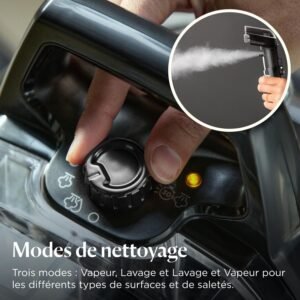 ⚡ Aspiration puissante + vapeur haute température