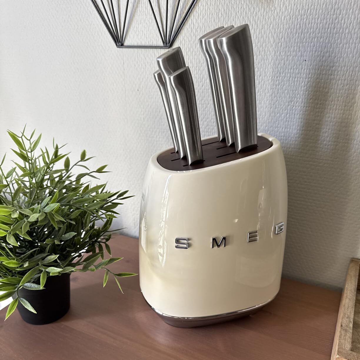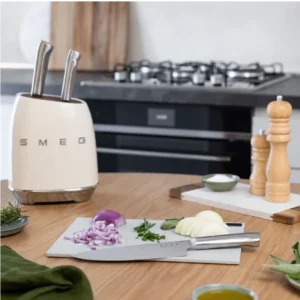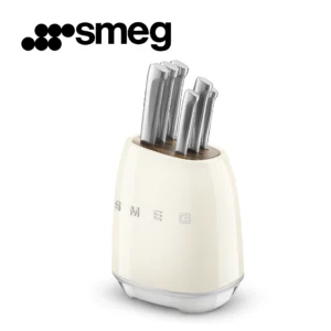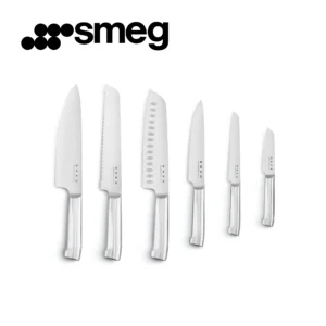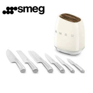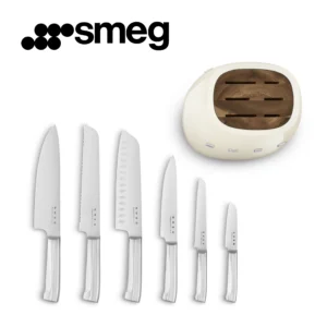 🔪 Smeg – حامل سكاكين ستانلس ستيل مع 6 سكاكين عالية الجودة 🔪