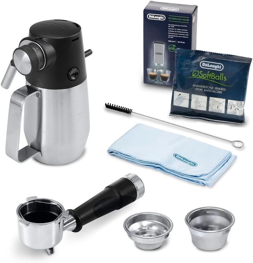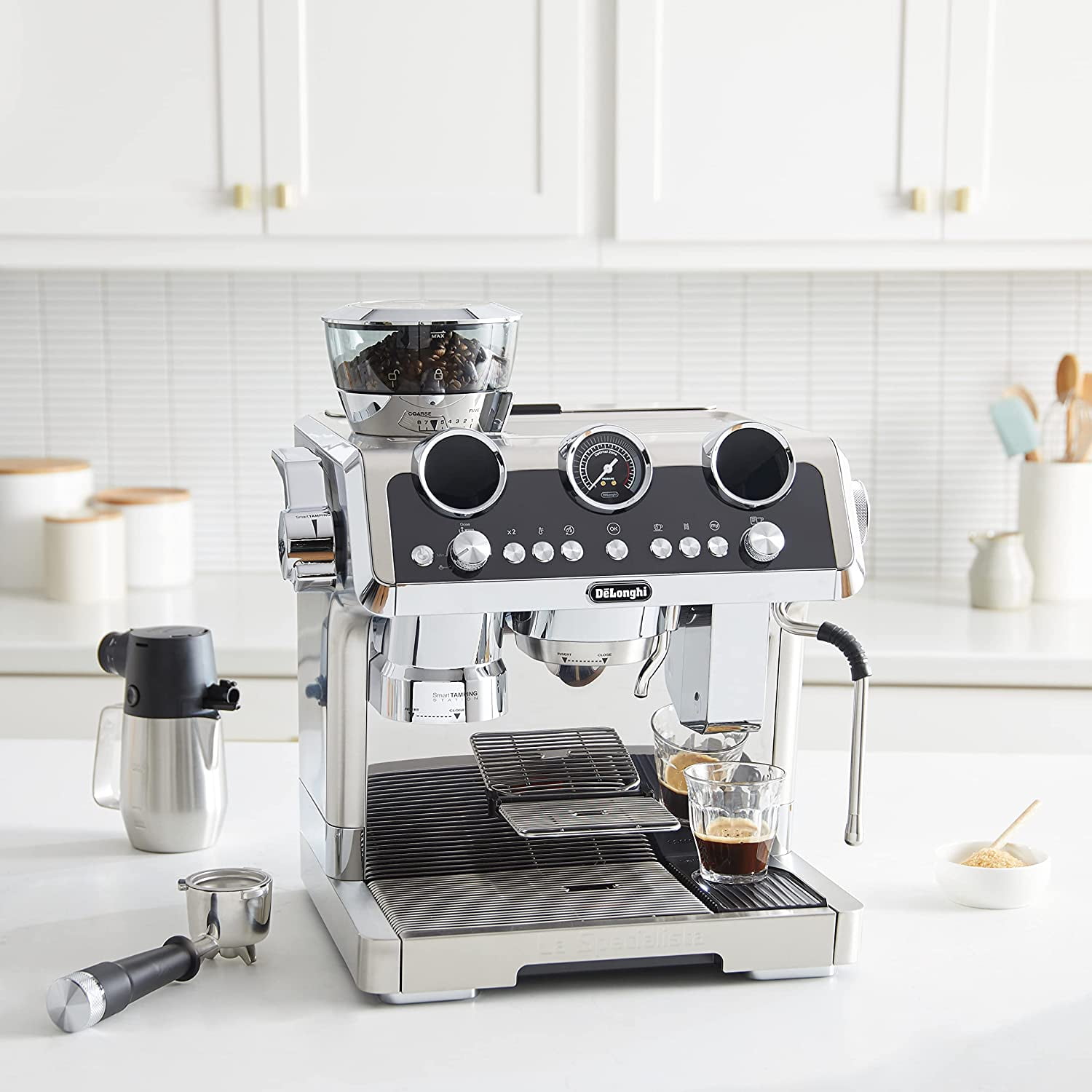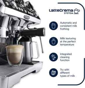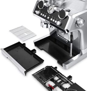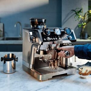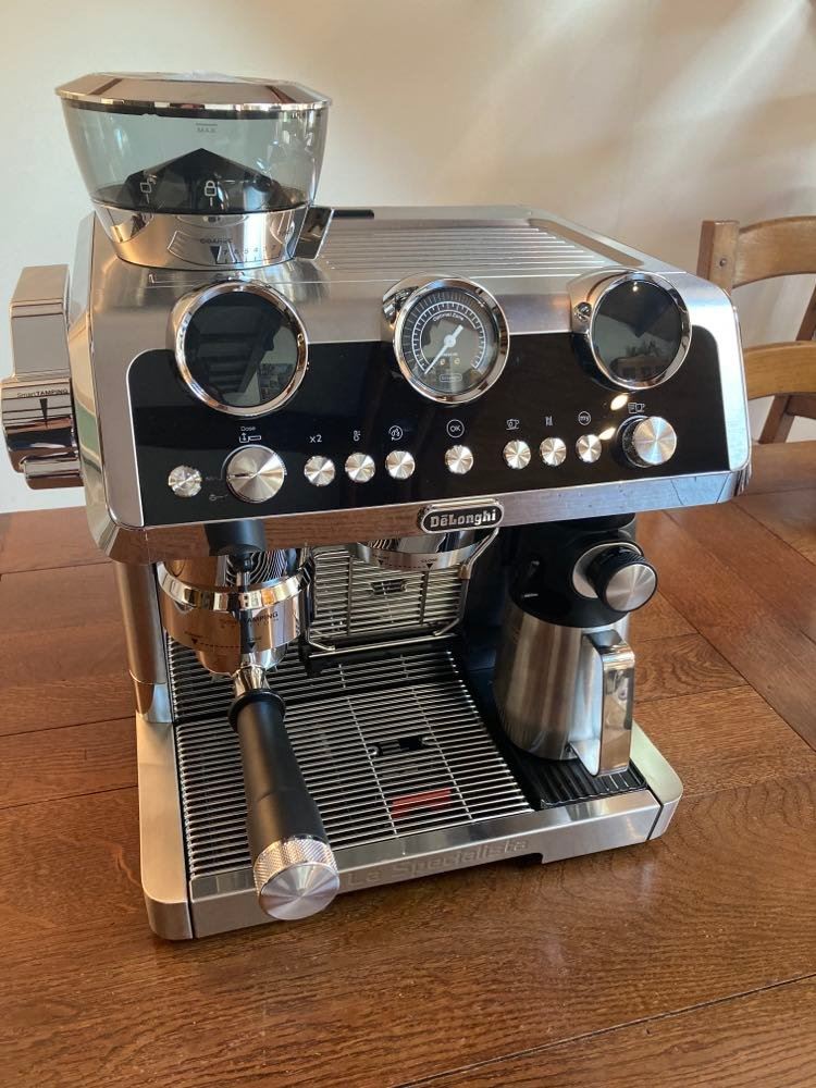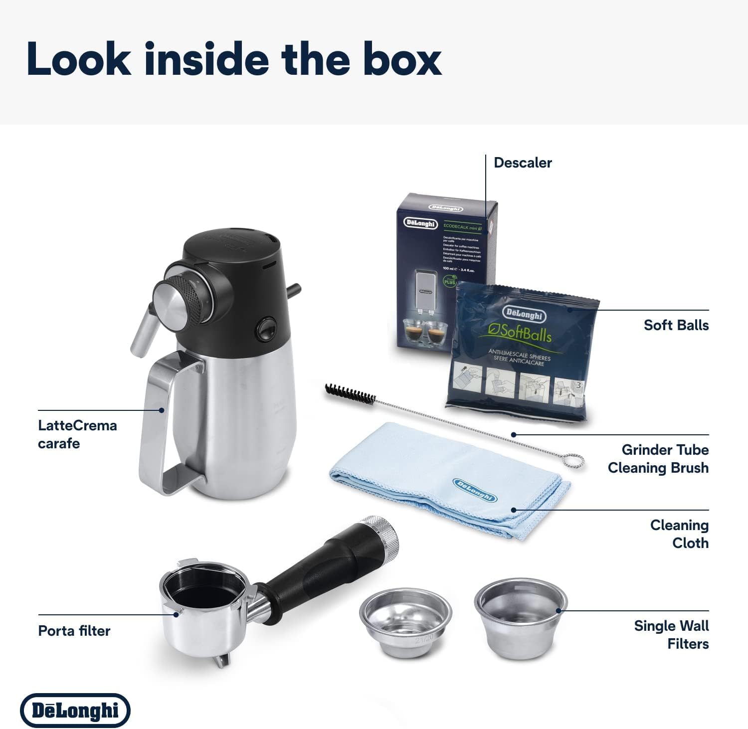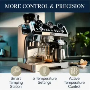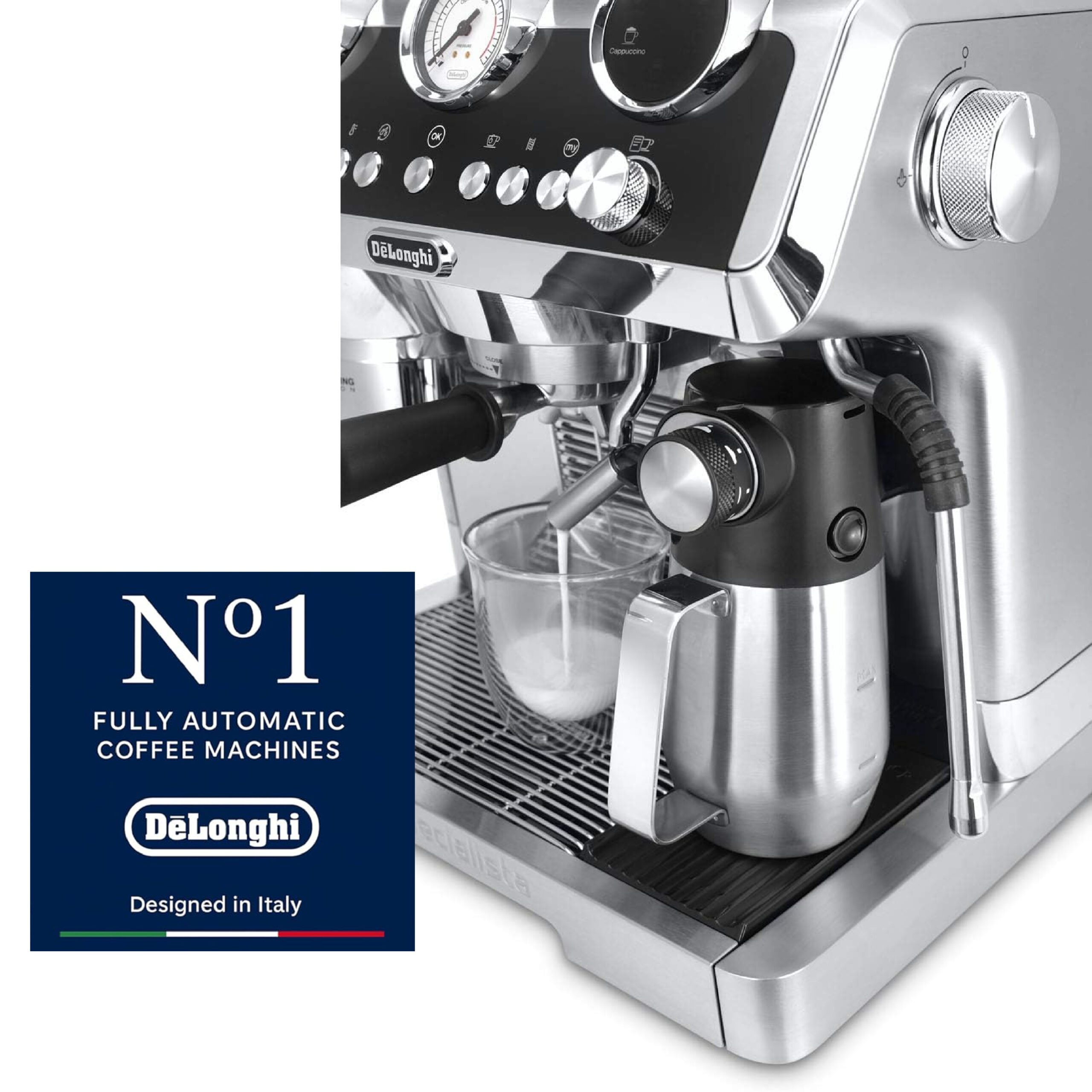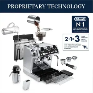 Bloc thermique perfectionné aveccontrôle actif de la température pour un temps de chauffe plus rapide de la machine et une grande stabilité de la température.3 réglages de température du café, (~92°-94°-96°C) pour le plaisir du café, adaptés à tous les types de grains de café. Filtres à simple paroi et portafiltreLa Specialistaen acier inoxydable (capacité de 20 gr de café) pour un meilleur contrôle de l’extraction du café et une saveur plus riche et plus intense.Buse vapeur MyLatte Art : parfaite pour créer la texture soyeuse et fine qui rend vos lattes et vos flat whitessi spéciaux.Recettes de café : espresso simple et double, café et eau chaude.Place pour des tasses jusqu’à 120 mm.Le support de tasse à espresso (espace de 85 mm) aide à obtenir une crème parfaite lorsque vous utilisez de petites tasses à espresso.Le compartiment à accessoires : Idéal pour ranger les accessoires de la machine.Boîtier entièrement métallique aux dimensions agrandies mais compactes pour une stabilité accrue de la machine.40 % des composants et pièces en plastique de la machine sont fabriqués à partir de plastique recyclé.Nouveau panneau de commande de haute qualité et facile à utiliser avec 5 touches spéciales.Alerte détartrage réservoir d’eauvide.