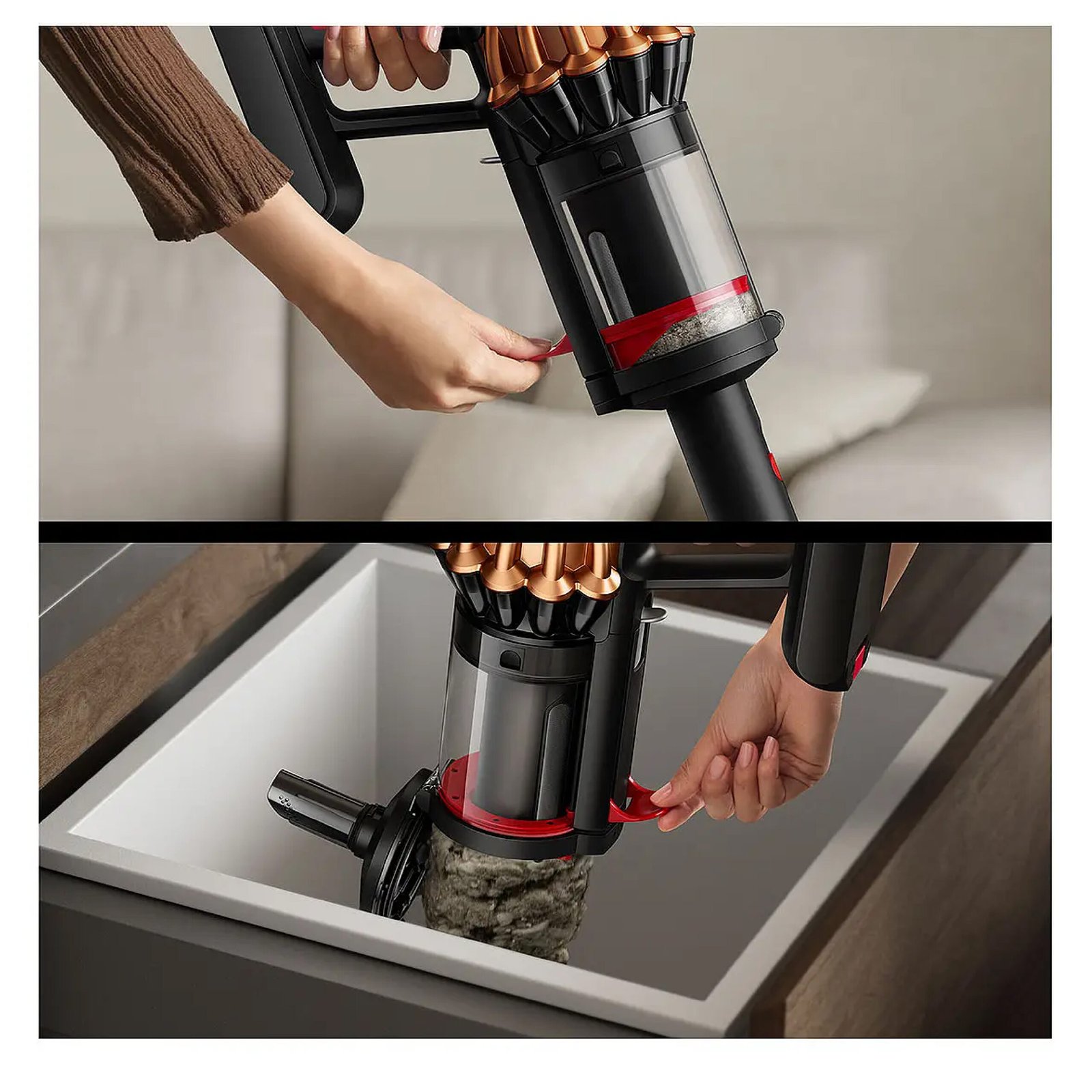 L’aspirateur sans fil avec la plus grande puissance d’aspiration et la technologie de démêlage des cheveux.¹ 315 AW de puissance d’aspiration élevée et constante, générée par le nouveau moteur numérique Dyson Hyperdymium™ de 900 W.