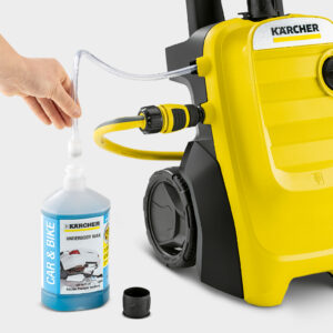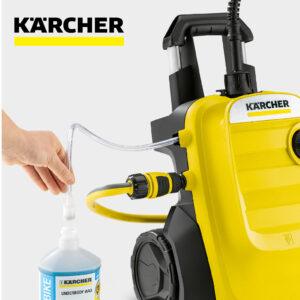 📦 محتوى العلبة: جهاز Kärcher K 4 Power Control، مسدس ضغط، خرطوم 8 م، رمح Vario Power وفوهة دوّارة للأوساخ العنيدة