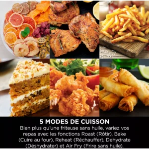 🍗 4 وظائف طهي متعددة – قلي بالهواء، تحميص، إعادة تسخين، وتجفيف الأطعمة.