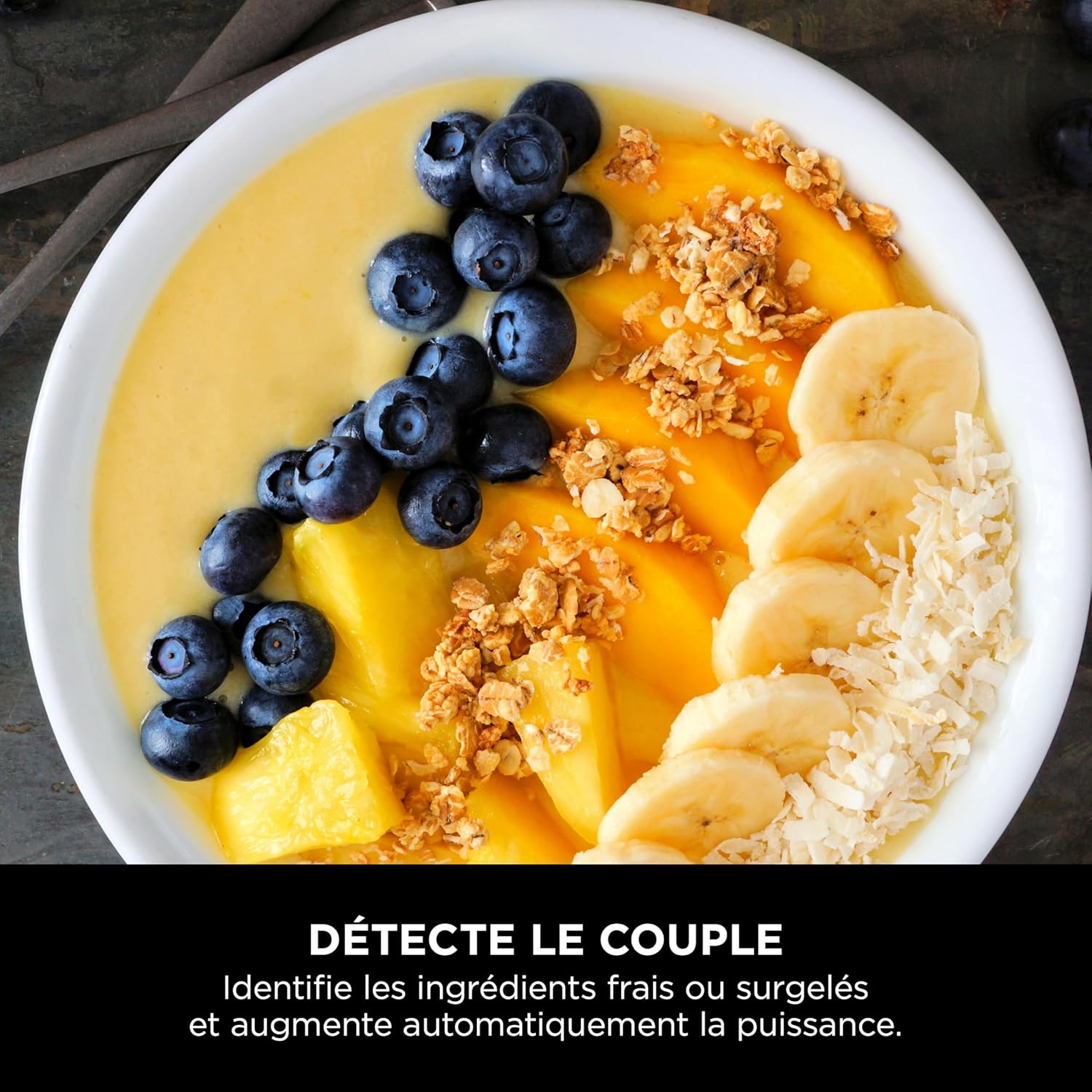 الجهاز يتعرف على المكونات، حجم الحصة، وحتى الثلج. بعدها يضبط السرعة والوقت والنبض تلقائياً ليقدّم لك نتيجة ناعمة ومتجانسة بدون مجهود.