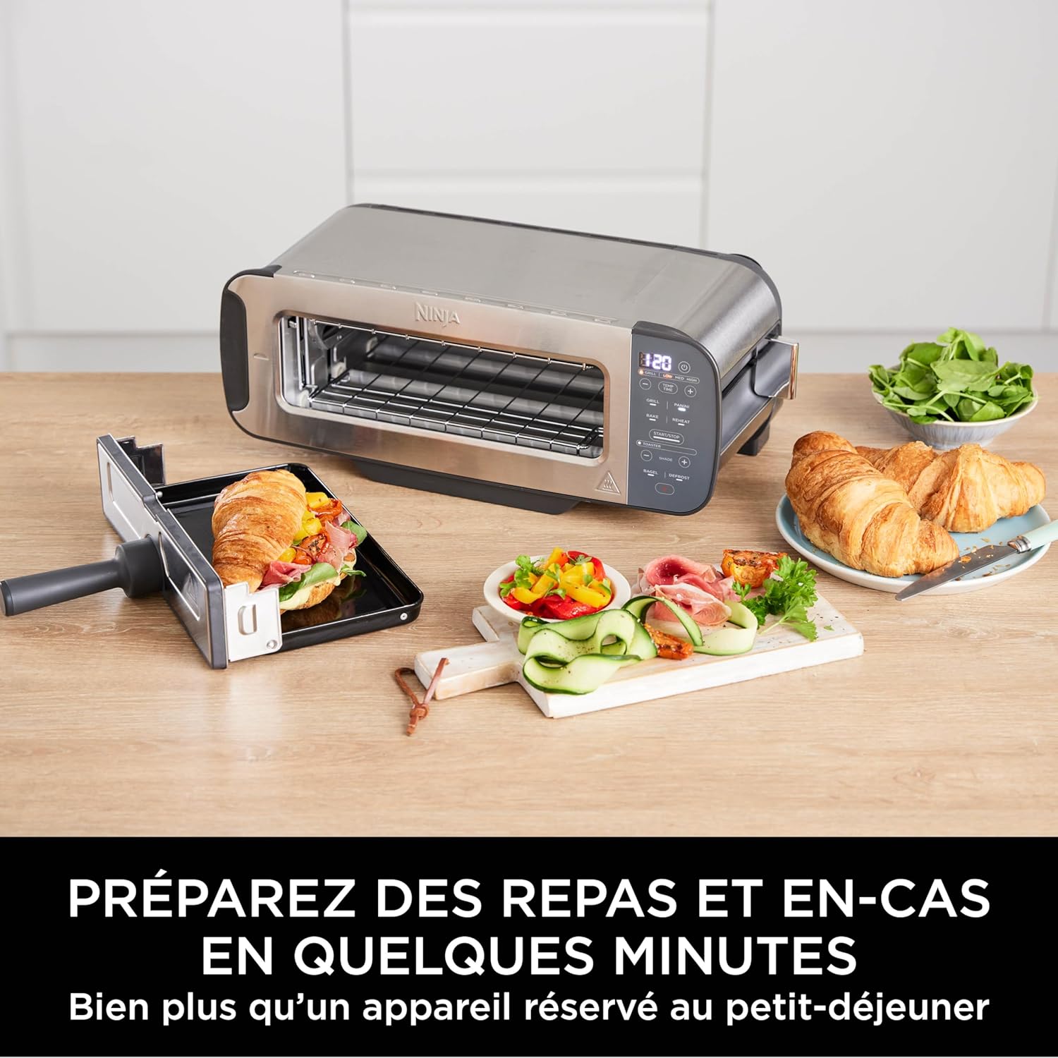| Caractéristiques | Arrêt automatique, 7 Fonctions de cuisson, 7 Réglages de grill, Mini-four, Presse à Panini et Grille-pain en 1 |