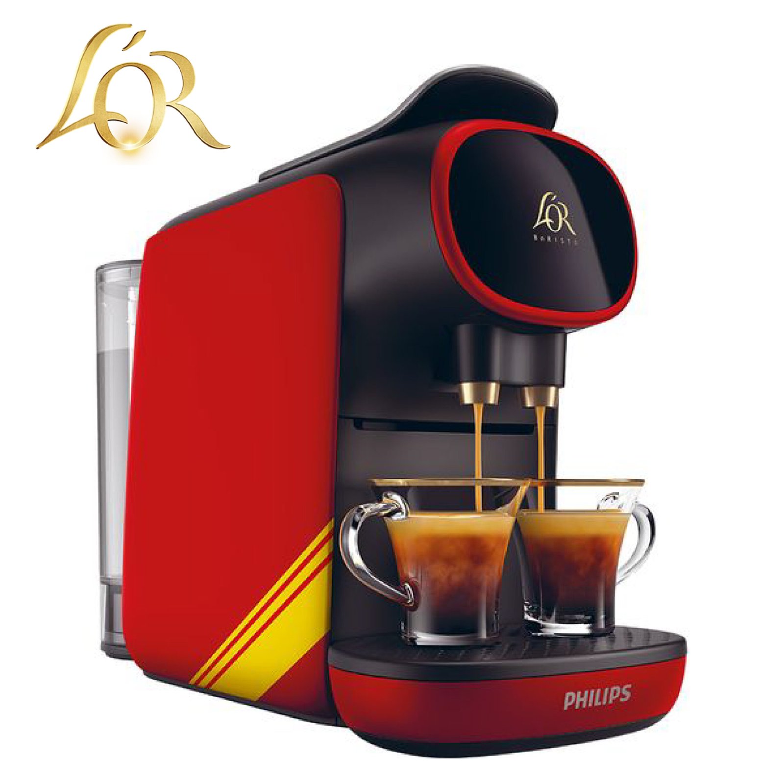 Découvrez la machine à café L’OR BARISTA® Sublime Rossa, une édition spéciale au design compact et mate. Cette machine vous permet de préparer facilement toutes les variétés de café à base d’espresso, selon des standards de qualité professionnelle, directement dans votre cuisine. Préparez deux espressos à la fois, un double espresso, un délicieux espresso ou un café extra long.