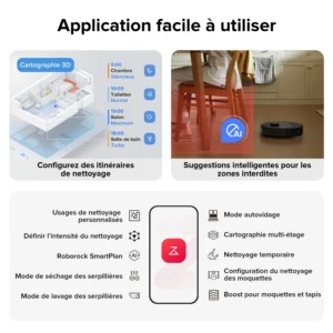 📱 تحكم عبر التطبيق – جدولة التنظيف، إعداد مناطق محظورة، وزيادة قوة الشفط تلقائيًا عند اكتشاف السجاد.