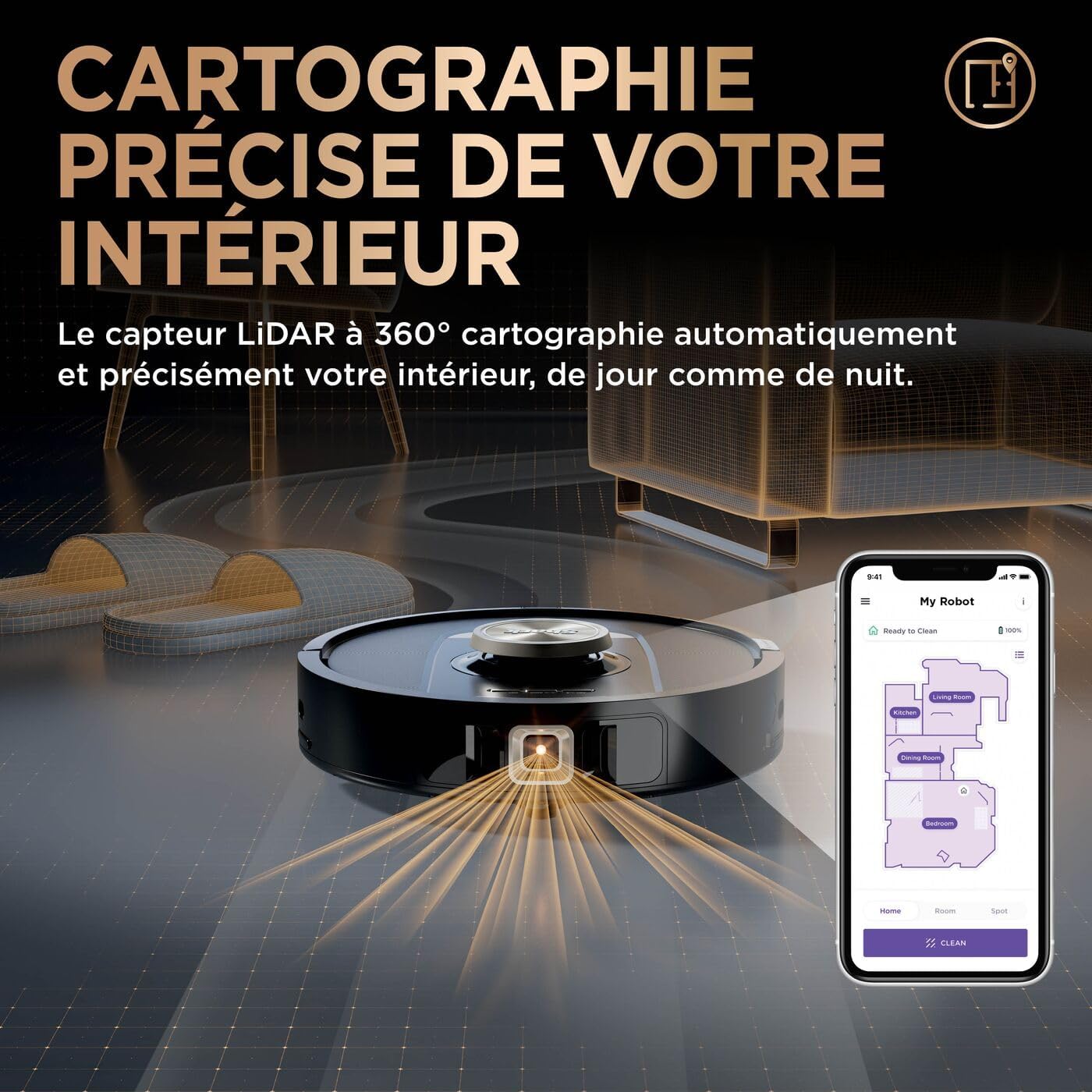 تكتشف الغبرة الخفية، البقع العنيدة، الزوايا، وتضبط قوتها حسب نوع الأرضية 👌