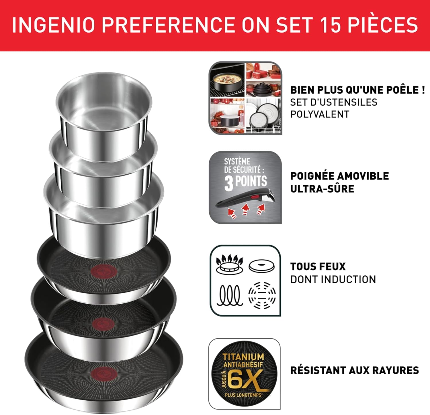 الطقم مصمم ليُخزن فوق بعضه بشكل مريح، مما يوفر مساحة في الخزائن والأدراج. مناسب جداً للمطابخ الصغيرة أو لمن يحب التنظيم.