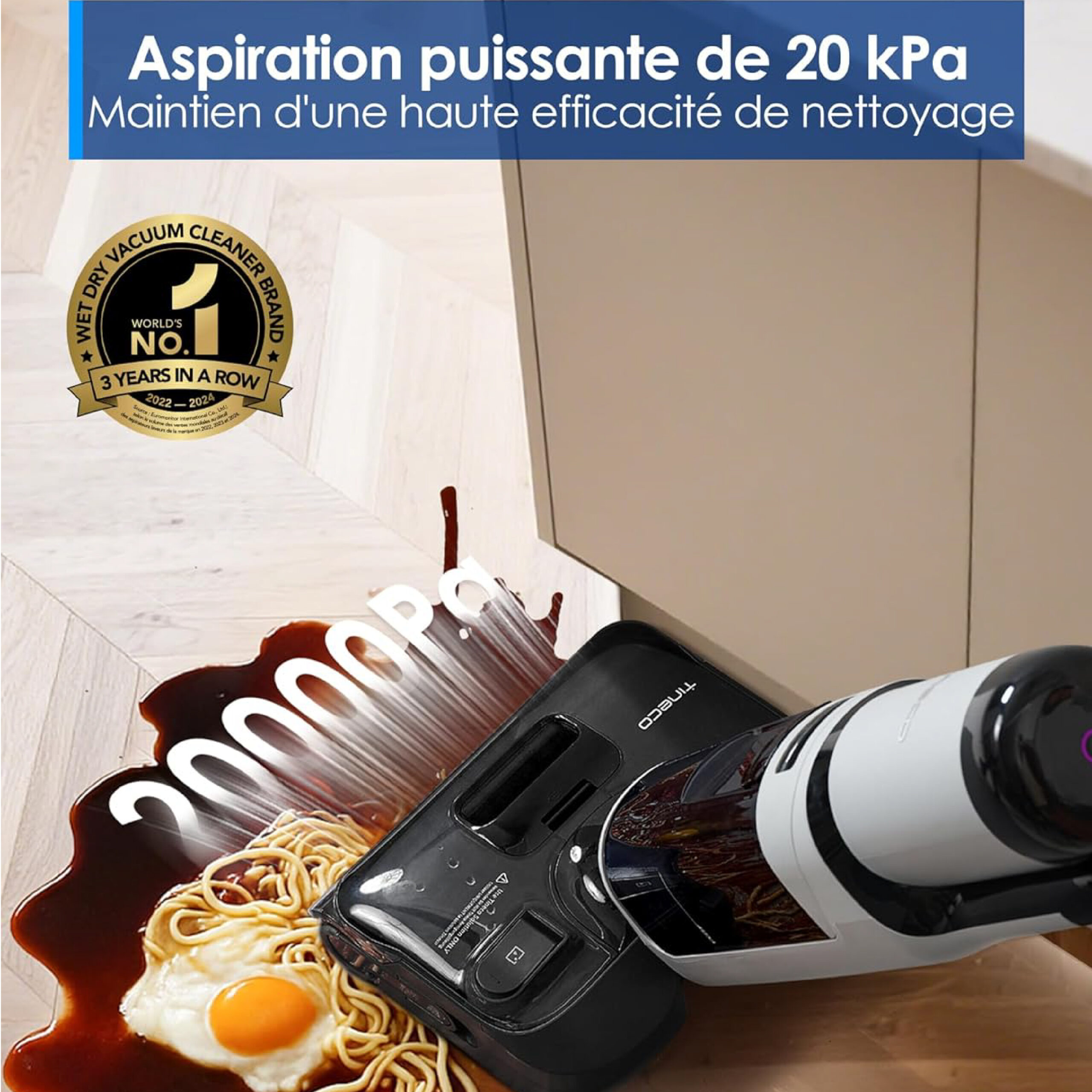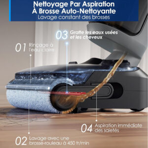 - 💨 Aspiration puissante 20 kPa : Avec sa puissance de 20 kPa, il élimine instantanément débris, taches et cheveux pour un nettoyage ultra-efficace.