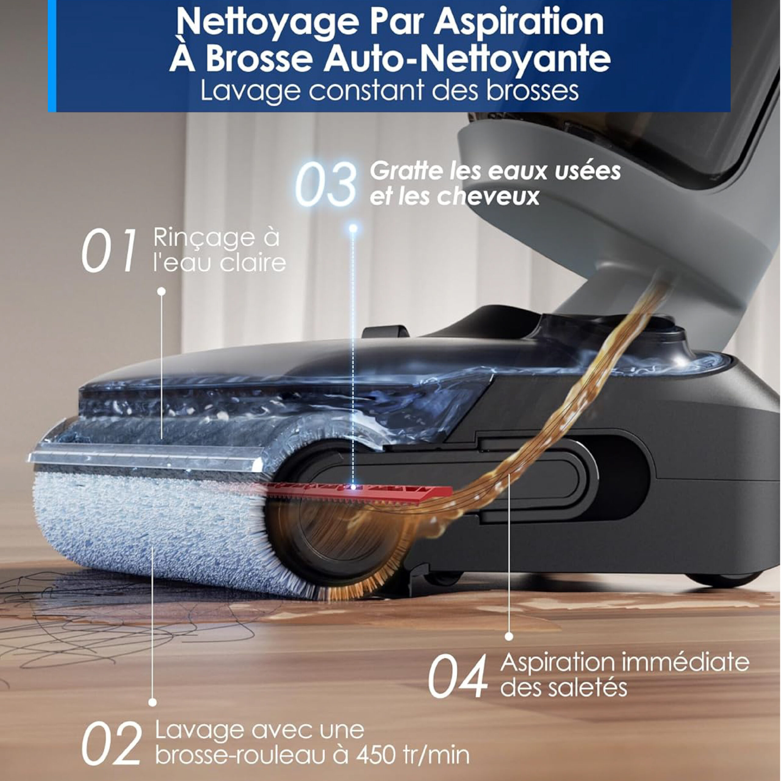 - 💧✨ Nettoyage à la brosse propre en continu : Pulvérisation d’eau propre + raclage automatique pour une brosse impeccable à chaque passage.