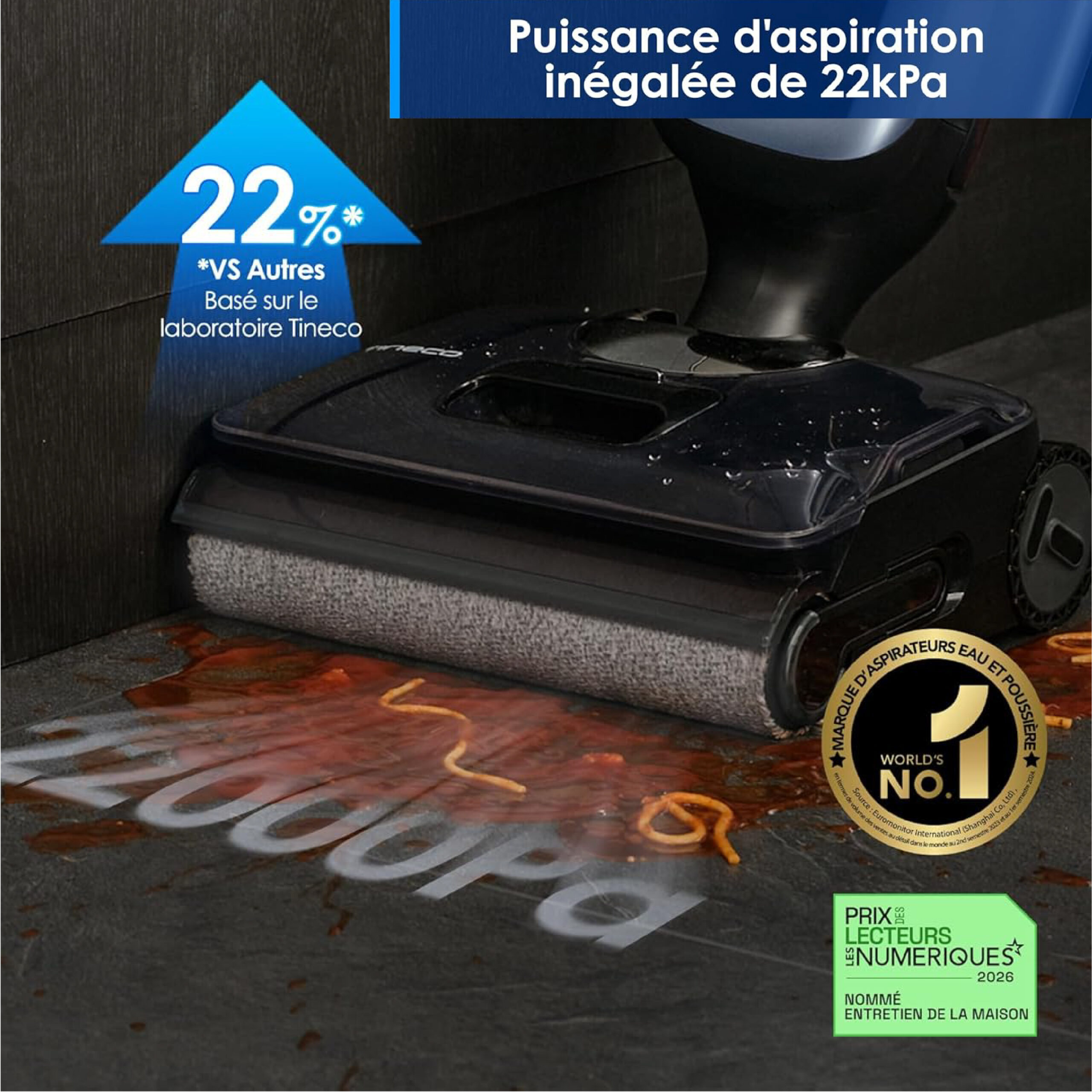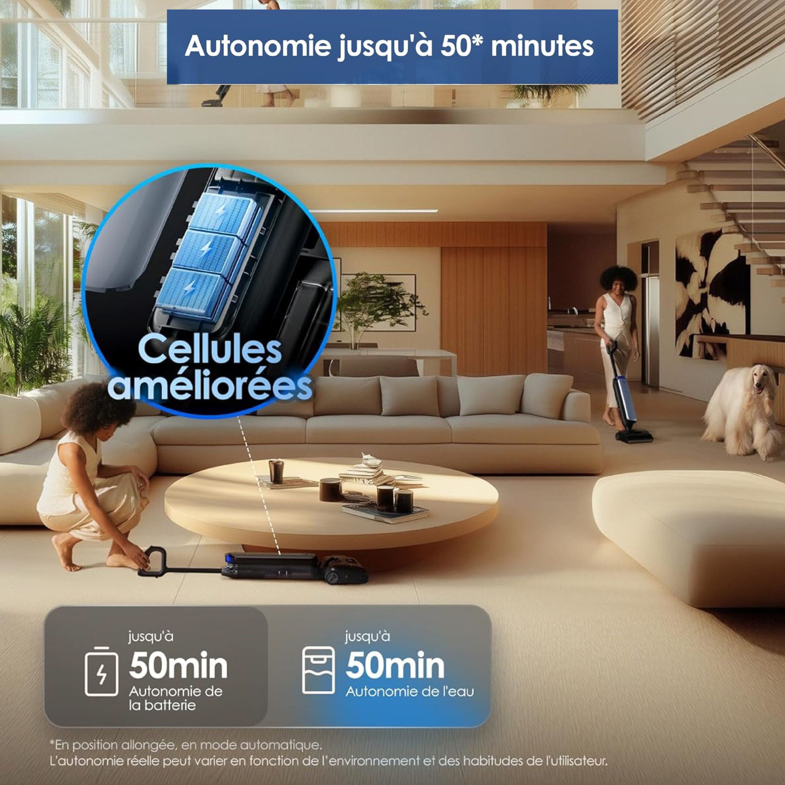 💨 Aspiration puissante 22 kPa + 50 min d’autonomie