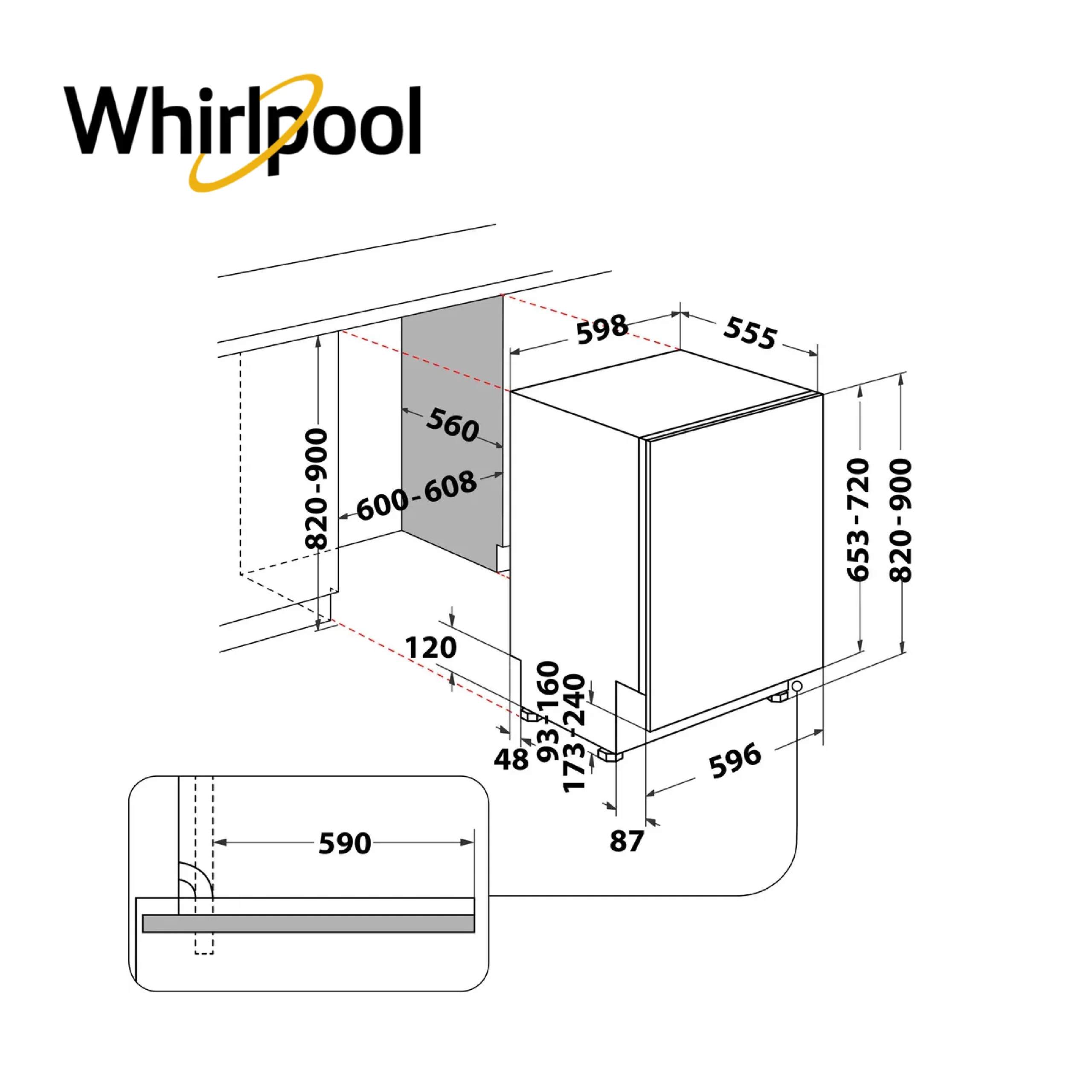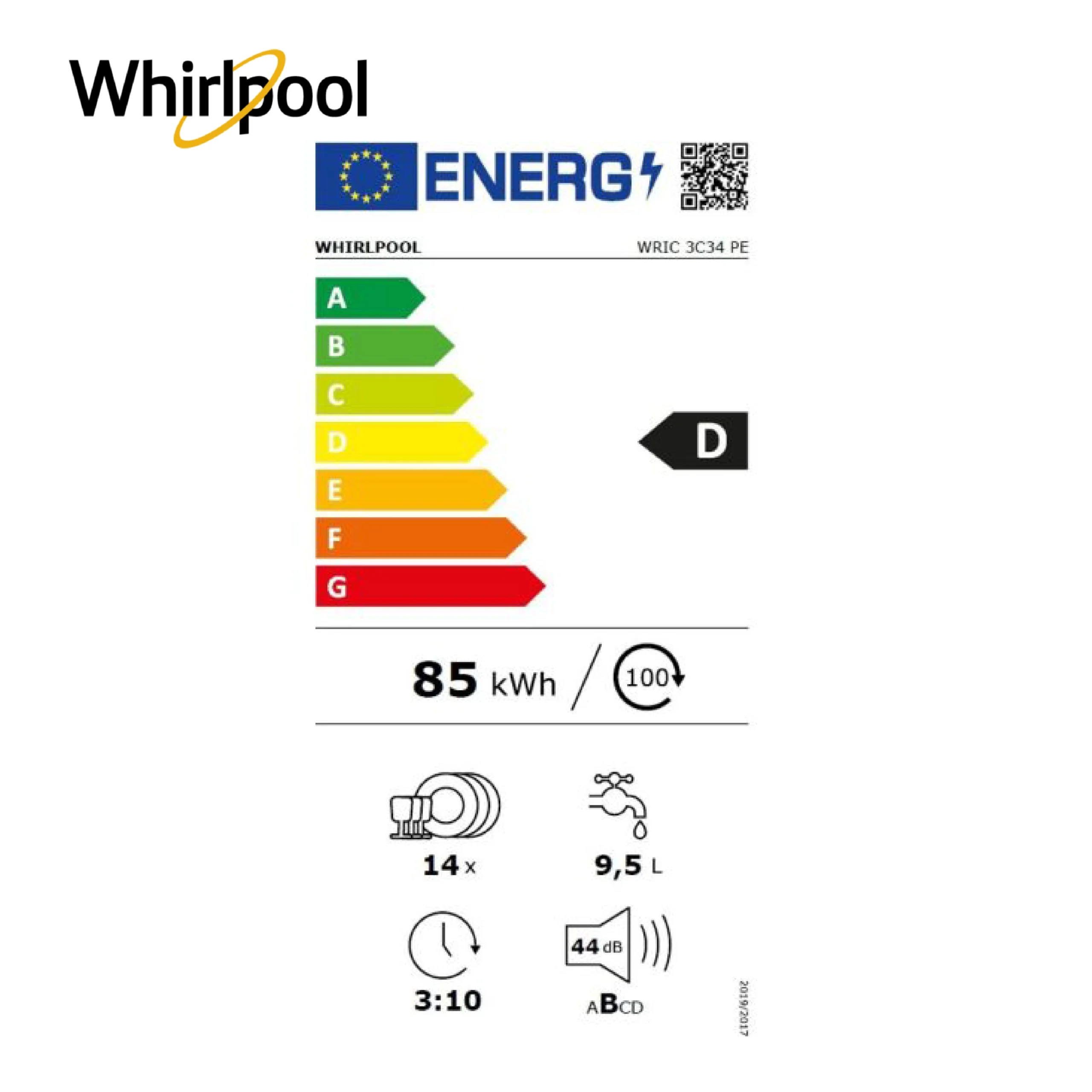 📦 المحتوى: غسالة الصحون ويرلبول WRIC3C34PE، دليل المستخدم، وملحقات التثبيت الأساسية.